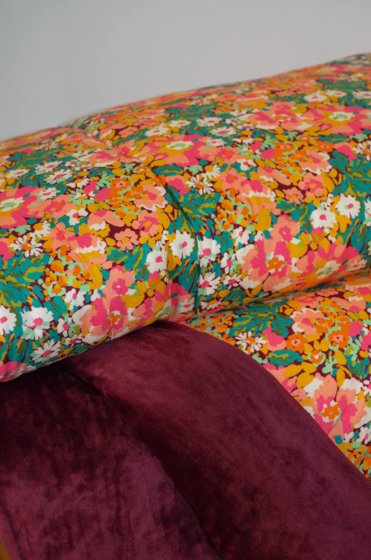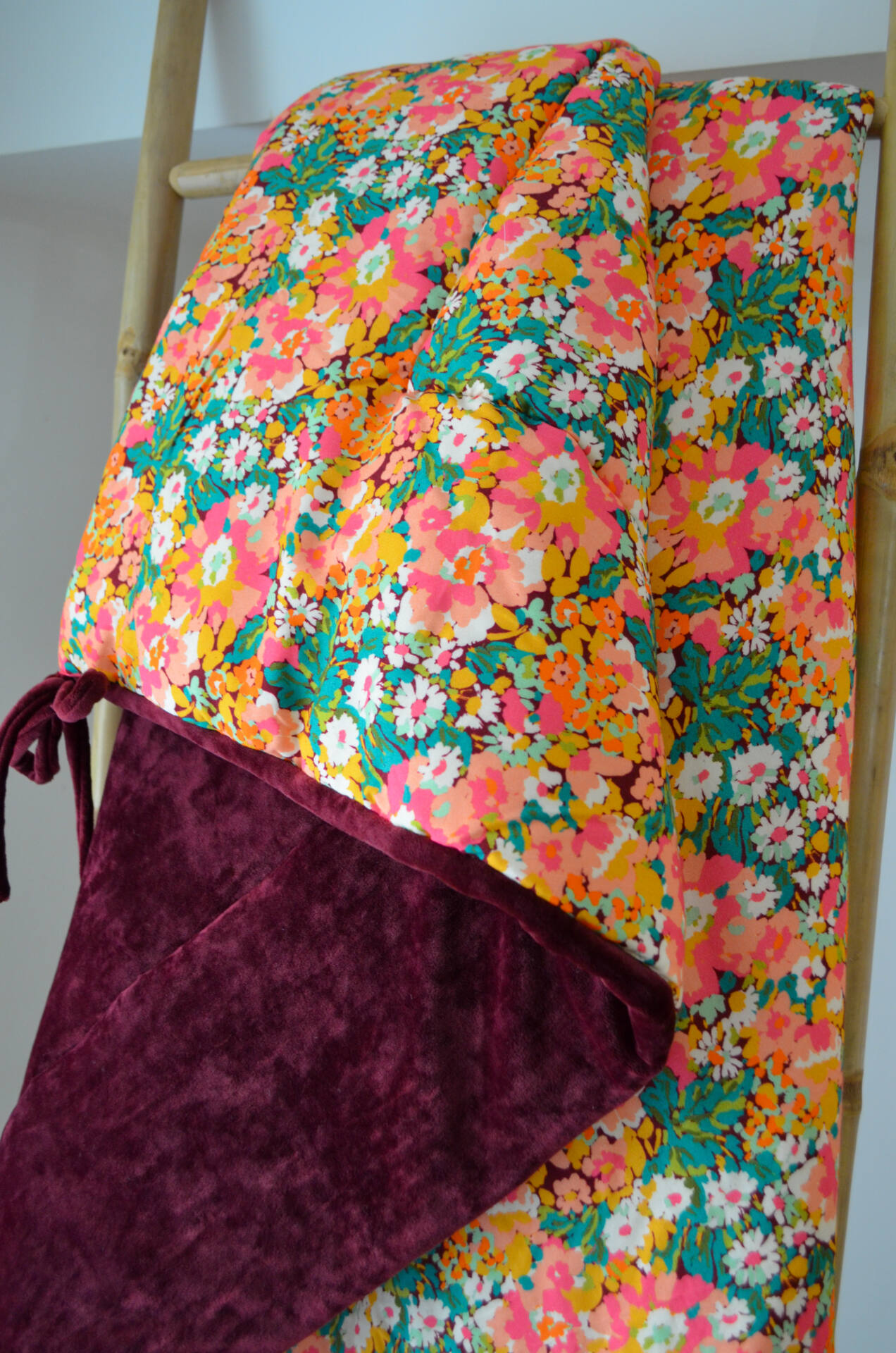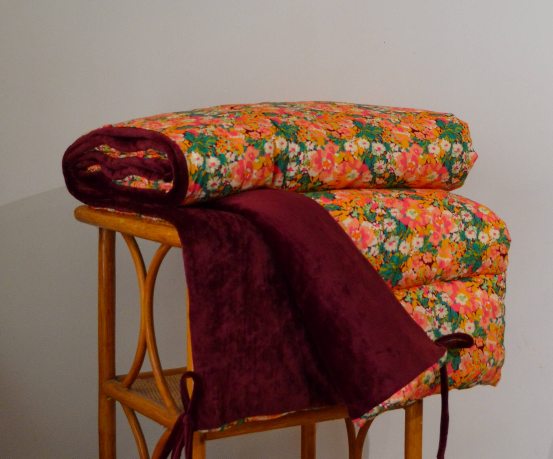 Cette courtepointe prend vie dans l’atelier Maison Velvety, à Montpellier. Chaque modèle est imaginé, coupé et confectionné à la main, en série limitée.