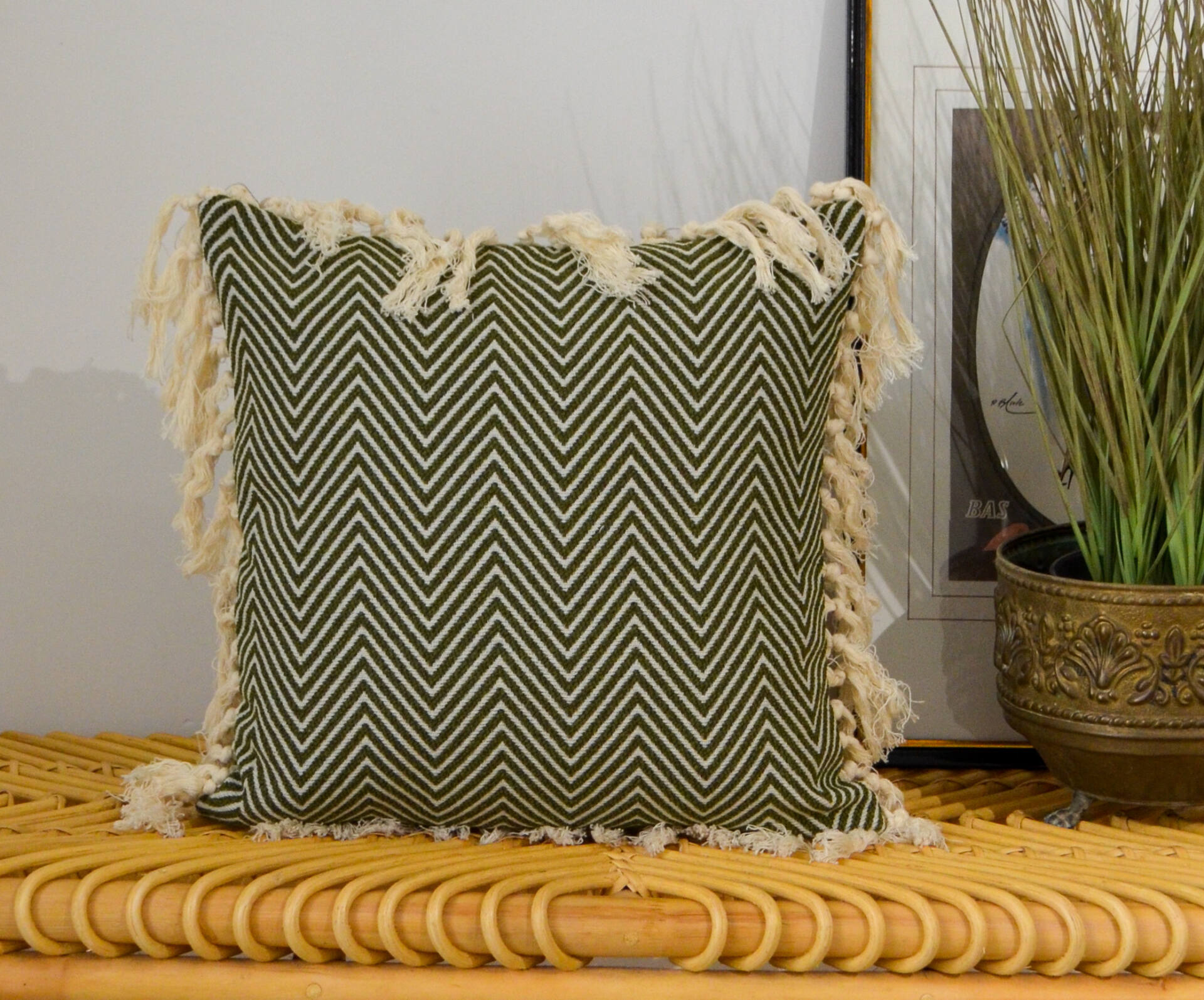 Coussin 40x40cm – FAIT MAIN en FRANCE – coton d’ameublement et franges