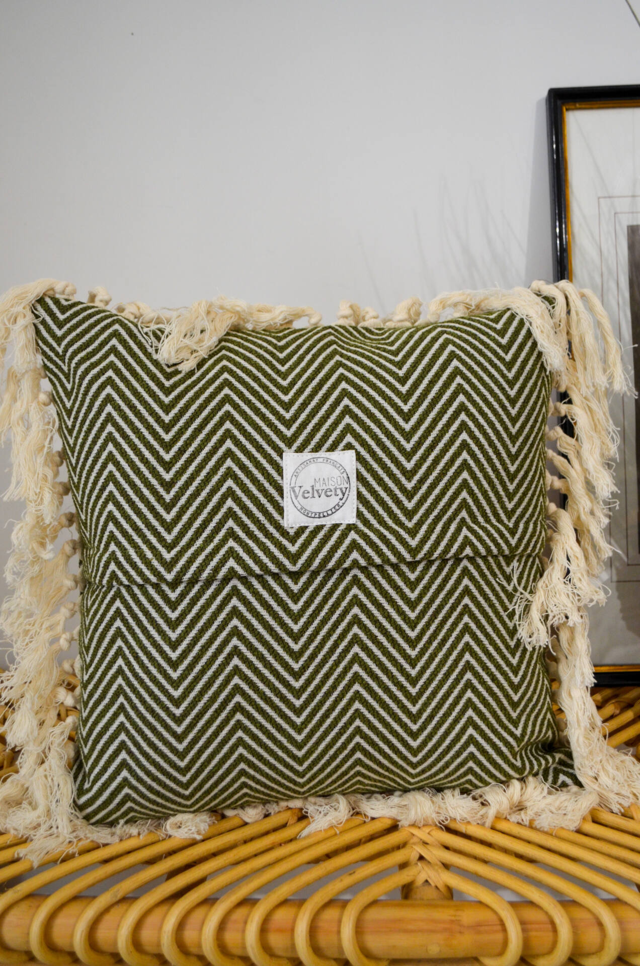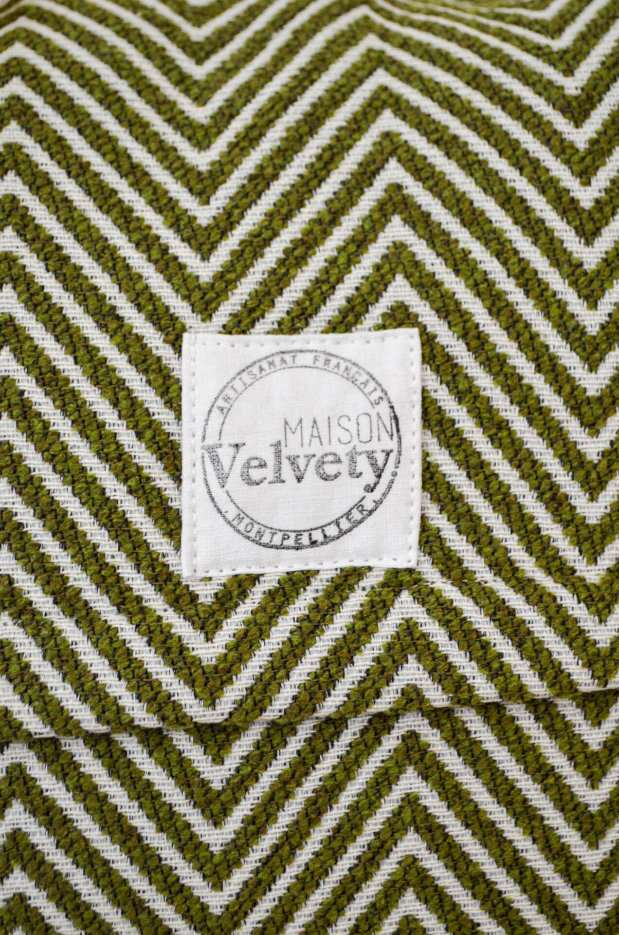Coussins de qualité, conçus et confectionnés par nos soins dans l’atelier de la Maison Velvety à Montpellier.