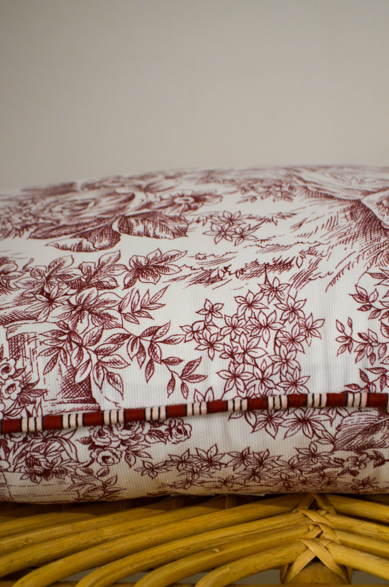– Pas d’effilochage grâce au surjetage systématique de toutes les pièces du coussin.