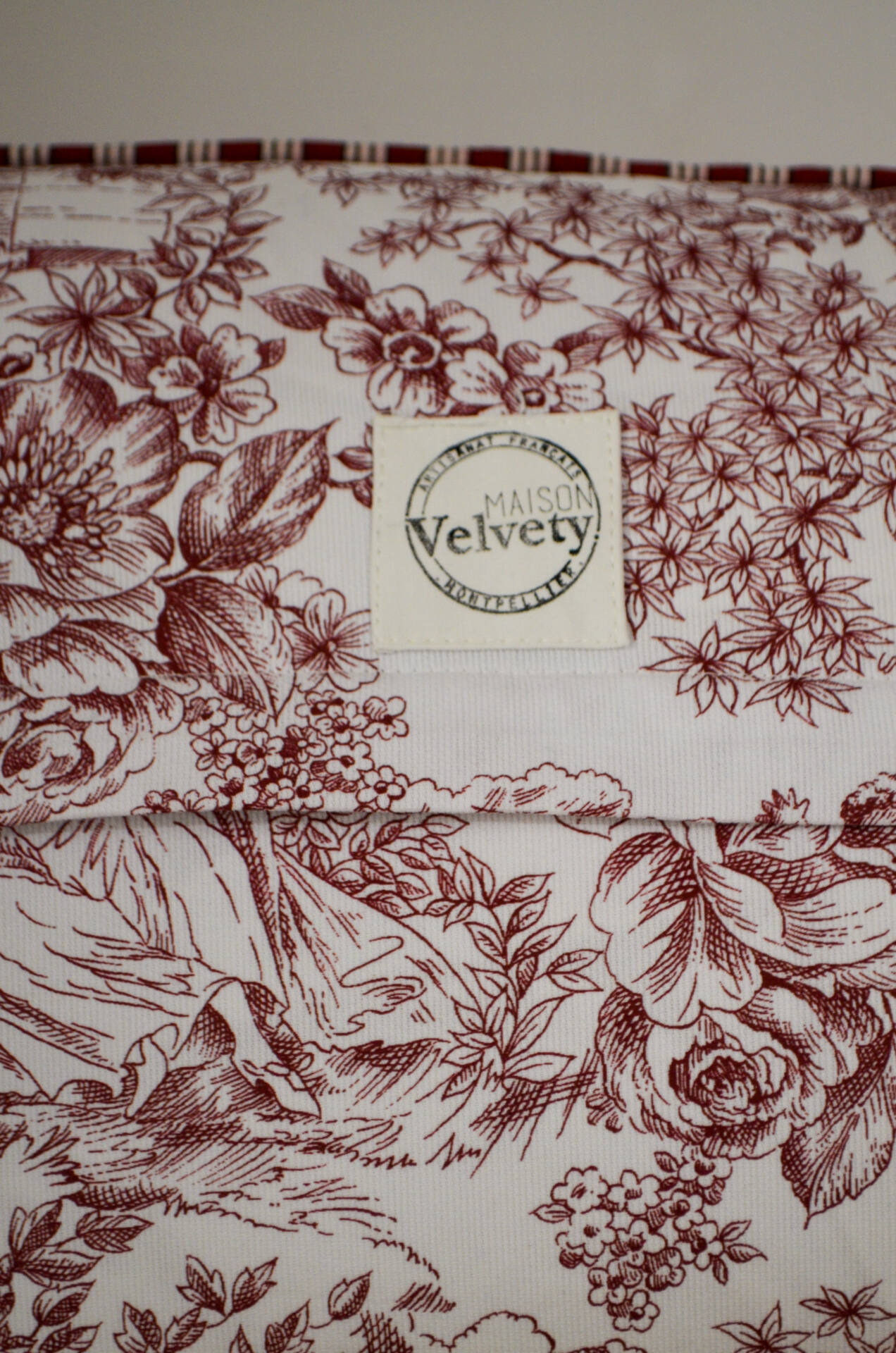 Coussin de qualité, conçu et confectionné par nos soins dans l’atelier de la Maison Velvety à Montpellier.
