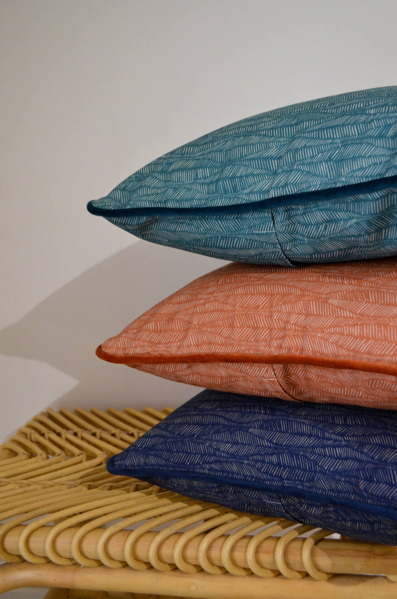 Coussins de qualité, conçus et confectionnés par nos soins dans l’atelier de la Maison Velvety à Montpellier.